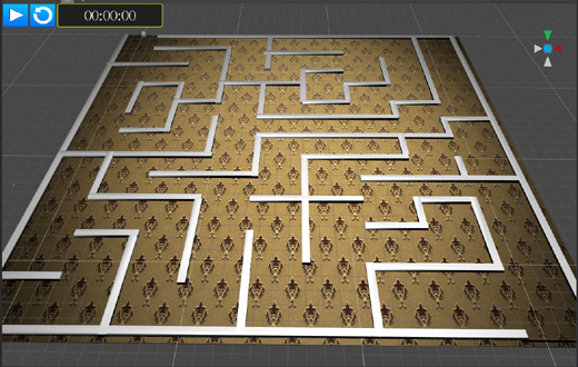 평면상에 물리적 벽을 설정하여 공의 위치가 멋어나지 않는 상황에서 출구를 찾아나가는 방식의 미로를 구현